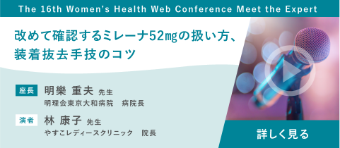 Breadcrumb Home 製品情報 ミレーナ ミレーナポータル ミレーナ ミレーナポータル ミレーナポータル 製品基本情報 製品基本情報 製品Q&A 製品Q&A ミレーナポータル 子宮内黄体ホルモン放出システム ミレーナに関する資料をご案内しています。患者さんへの説明時やミレーナ処方時にお使いいただける資料や、ミレーナに関するWebカンファレンスの動画・講演録をご覧いただけます。 製品基本情報はこちら 製品Q&Aはこちら 医師向け ミレーナに関連する医師向け資材をご覧いただけます。 ミレーナ52mg装着・除去方法ミレーナの装着・除去方法について、装着前の準備、装着方法、除去・再装着までをPDFで詳しく説明しています。詳しくはこちら ミレーナ52mgの装着・除去方法動画ミレーナの装着・除去方法について、装着前の準備、装着方法、除去・再装着までを動画で詳しく説明しています。詳しくはこちら 品質情報報告例からみた装着・除去操作の注意点ミレーナの正しい取り扱い方、装着・抜去時の注意点を動画で詳しく説明しています。詳しくはこちら トラブルシューティングミレーナ装着・除去に関するマイナートラブルの対処法をまとめて紹介しています。・装着が困難な症例・装着後の疼痛・装着後の出血・位置異常・除去糸が見えない・子宮穿孔詳しくはこちら ミレーナ52mg使用の手引きミレーナ処方に関して、処方までの流れ、注意が必要な症例、FAQ、装着後の超音波画像集、トラブルシューティング情報をまとめた手引きです。詳しくはこちら 会員限定ミレーナの効能又は効果別臨床データと適正使用情報ミレーナの基本情報、有効性及び安全性に関するデータをまとめたリーフレットです。詳しくはこちら 使用者向け ミレーナを使用する患者さんへお渡しいただける資材をご案内しています。 ミレーナハンドブック 「ミレーナ52mgをご使用中のみなさまへ」ミレーナ装着後の女性にお渡しいただく冊子です。 以下の内容が1冊に収載されています。ミレーナの特徴、効果についての説明装着後の注意事項、よくある質問検診スケジュール記入欄ミレーナダイアリー(6ヶ月分)ミレーナリマインダーのご案内ミレーナ使用者カード(本誌から切り取って使用できます)詳しくはこちら ミレーナ52mg使用者用説明書ミレーナを装着される一般女性の皆さまへの使用者用説明書です。製品パッケージに同梱されています。 製品に関するQ&Aが掲載されています。詳しくはこちら ミレーナ52mgリマインダーのご案内ミレーナ52mgリマインダーは、ミレーナを装着された方に、検診時期等をお知らせするメールサービスです。ミレーナを装着された日付を登録することで、装着してから5年間、定期検診の時期と交換の時期をご登録いただいたメールアドレスにお知らせします。 ※サービスご利用にあたり、メールアドレス等のご登録が必要です。詳しくはこちら ミレーナLINEサポートサービスミレーナを使用されている患者さんのためのLINEを使った使用管理サポートサービスです。詳しくはこちら 患者さん説明 ミレーナを患者さんへ説明いただく際にご使いいただける資材をご案内しています。 「LNG-IUSによる過多月経・月経困難症の治療をされる方へ」ミレーナによる過多月経・月経困難症の治療をされる患者さまへの説明資料です。 (A4サイズ両面刷)詳しくはこちら 「LNG-IUSによる過多月経・月経困難症の治療をされる方へ」(英語)ミレーナによる過多月経・月経困難症の治療をされる患者さまへの説明資料です。 (A4サイズ両面刷)詳しくはこちら ミレーナ使用者向け説明用動画「ミレーナ52mg ご使用中の皆様へ」ミレーナをご使用の方向けに、製品のこと、挿入後の身体の変化等、ミレーナ挿入に伴い知っておいて頂きたいことをまとめました。 従来の小冊子、使用者向けWebサイトに掲載している内容を説明用に動画化したものです。詳しくはこちら 会員限定ミレーナ使用者向け説明用動画 ダウンロードミレーナ使用者向け説明用動画をzip形式でダウンロードいただけます。 患者さまご説明資料などにご活用ください。詳しくはこちら ミレーナ処方時チェックシートミレーナを装着される前にご使用いただくチェックシートです。ダウンロードしてご利用ください。詳しくはこちら 英語版ミレーナ処方時チェックシートミレーナ処方時チェックシートの英語版です。詳しくはこちら 処方時チェックシート解説ミレーナ処方時チェックシートの医師向け解説資料です。詳しくはこちら オンデマンド動画 会員限定The 18th Women's Health Web Conference ミレーナ保険適用10周年 Meet the Expertミレーナを使いこなすために ~実地臨床のリアルとコツ〜演者:松永 雅美先生(みやびレディースクリニック院長)2024年11月14日(木)実施詳しくはこちら 会員限定40歳以上の過多月経と月経困難症ミレーナは子宮腔内への局所作用を有する唯一のプロゲスチン単独製剤で、一度の装着で最長5年間にわたり効果を発揮します。本テーマでは、40代以降の月経困難症患者